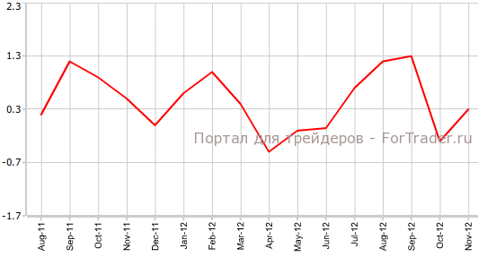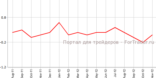 Согласно вышедшим 13 декабря официальным данным, индекс цен производителей в США в ноябре упал на 0,8% по сравнению с октябрем, когда было зафиксировано значение -0,2%. Аналитики ожидали, что показатель сократится на 0,5%. В то же время, индекс цен производителей без учета продуктов питания и энергоносителей в США в ноябре поднялся на 0,1%, как и прогнозировали экономисты.