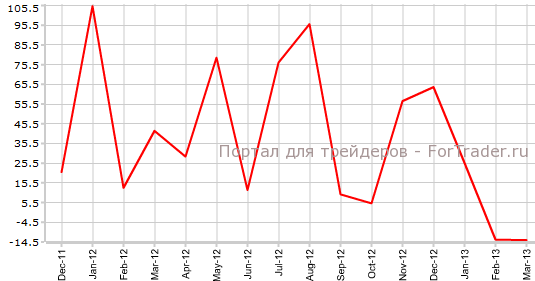 Покупки американских ценных бумаг иностранными инвесторами остались практически неизменными — в марте они составили -13,5 тыс, когда месяцем ранее было зафиксировано снижение на 13,3 тыс. Совершенно не угадали с фактическим значением показателя аналитики, предсказывавшие взлет до уровня 33,8 тысяч.