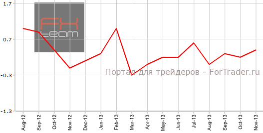 Розничные продажи и продажи продуктов питания без учета автомобилей в США в ноябре ускорились на 0,4%. Аналитики ожидали, что индекс розничных продаж будет зафиксирован на отметке 0,2%.