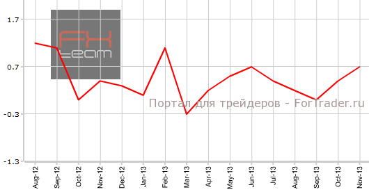 Розничные продажи и продажи продуктов питания в США в ноябре поднялись на 0,7%, когда прогнозировалось улучшение на 0,6%. За октябрь продажи пересмотрены до +0,6% с +0,4%.