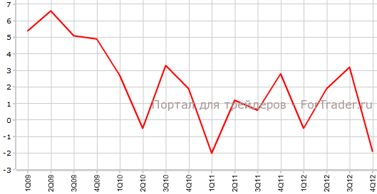 Производительность труда в непроизводственном секторе США в 4-м квартале пересмотрена до -1,9% с -2,0% . Как сообщает журнал ForTrader, рынок ожидал значения -1,6%. Таким образом, производительность вне сельского хозяйства стала худшей с 1-го квартала 2011 года.