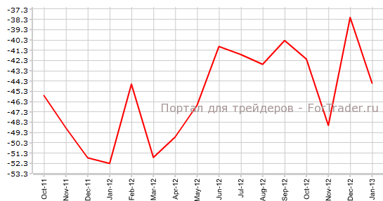 Отрицательное сальдо торгового баланса США в январе составило 44,45 млрд долларов против 38,5 млрд долларов в декабре. Средневзвешенный прогноз экономистов предусматривал увеличение дефицита до уровня 42,8 млрд долларов.