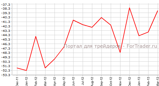 Дефицит внешней торговли США в марте составил 38,83 млрд долларов против 43,63 млрд долл в феврале. Средневзвешенный прогноз экономистов предполагал снижение дефицита торгового баланса до 42,1 млрд долларов, сообщает журнал ForTrader.