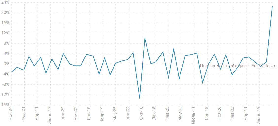 Изменение объема заказов на товары долгосрочного пользования без учета транспортного оборудования зафиксировано на отметке -0.8% м/м. Аналитики ожидали рост на 0.5% м/м. Предыдущее значение находилось на уровне 3.0% м/м. Ослабление данного показателя говорит о снижении расходов компаний в начале второго полугодия, после хорошего завершения первого полугодия.