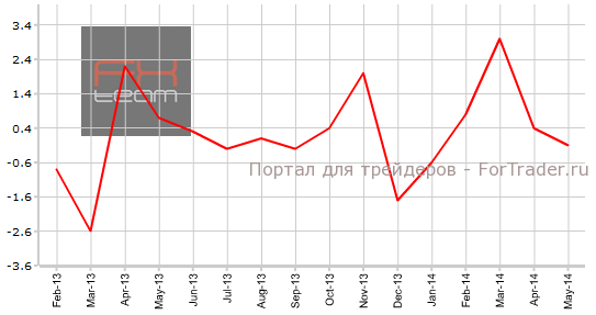 Изменение объема заказов на товары долгосрочного пользования без учета транспортного оборудования — менее волатильный показатель за счет исключения транспорта. Значение данного показателя зафиксировано на отметке -0.1% м/м, при прогнозе 0.3% м/м. Предыдущее значение составляло 0.4% м/м.
