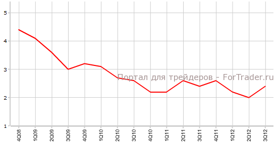 Согласно вышедшим 24 октября данным Австралийского статистического бюро, индекс потребительских цен в 3-м квартале вырос на 1,4% по сравнению с предыдущим периодом. Экономисты прогнозировали, что показатель, прервавший серию снижений темпов роста со 2-го кв 2011 года, поднимется на 1,1% против 2-го квартала. В годовом выражении CPI Австралии прибавил 2,0%.