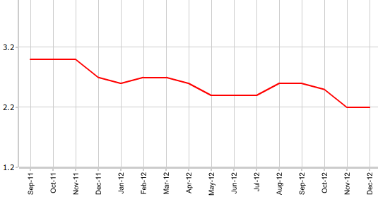 Согласно вышедшим 4 января данным статистического агентства ЕС Eurostat, предварительный индекс потребительских цен еврозоны в декабре поднялся, как и в ноябре, на 2,2%. Экономисты прогнозировали, что CPI составит +2,1%.