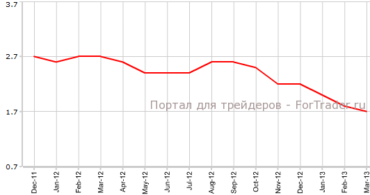 Согласно опубликованным 3 апреля данным статического агентства ЕС Eurostat, предварительный индекс потребительских цен еврозоны в марте поднялся на 1,7% против +1,8% в феврале. Аналитики предполагали еще большое снижение темпов роста CPI, на 1,6% .