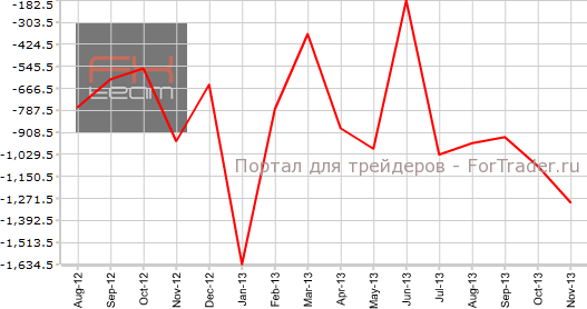 Согласно вышедшим 18 декабря официальным данным, отрицательное сальдо торгового баланса Японии в ноябре без коррекции на сезонные колебания составило 1,293 трлн иен против 1,092 иен в предыдущем месяце. Аналитики, правда, ожидали еще худшего результата – 1,351 млрд иен.
