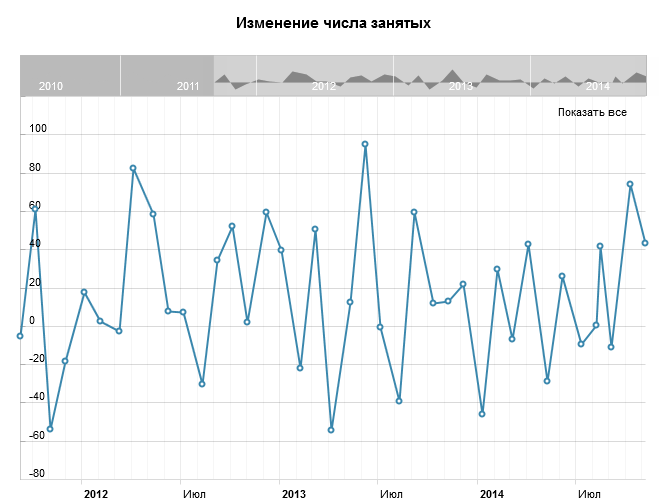 В октябре занятость выросла в розничной и оптовой торговле; в сфере финансов, страхования, недвижимости и лизинге; сфере производства; сфере образовательных услуг. В то же время, занятость снизилась в сфере государственного управления, прочих услуг и в секторе природных ресурсов.