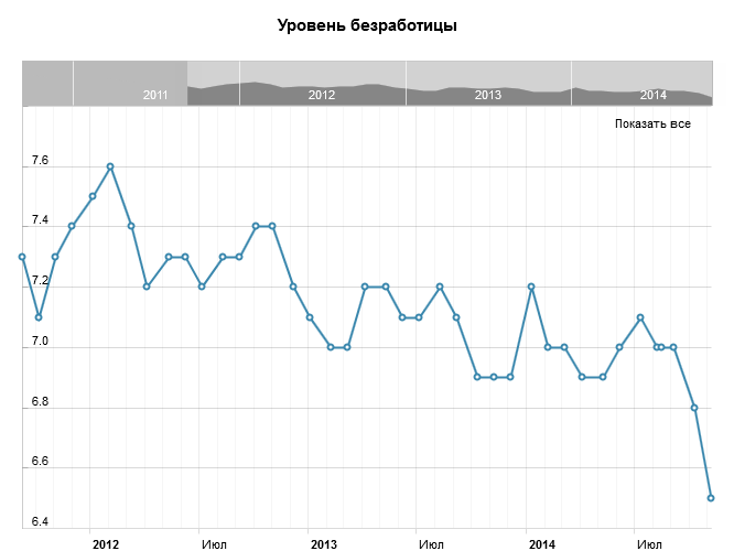 Уровень безработицы существенно снизился, составив 6.5% в октябре против 6.8% в сентябре и прогнозе. Текущий уровень является самым низким с ноября 2008 года.