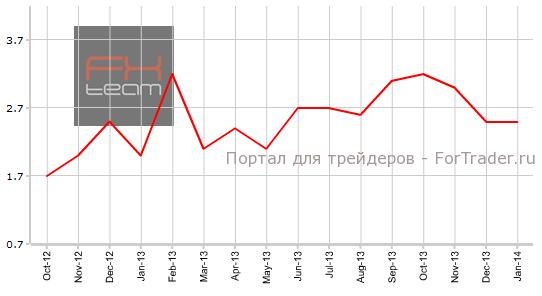 По данным, опубликованным National Bureau of Statistics of China, индекс потребительских цен Китая превысил прогноз рынка в 2,4% и составил 2,5% в январе. В декабре данный показатель все также составлял 2,5%.