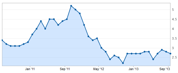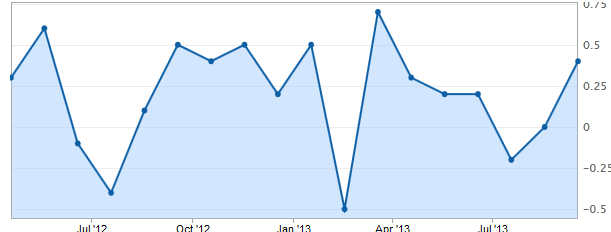 Согласно вышедшим 15 октября данным ONS, индекс потребительских цен Великобритании в сентябре вырос на 0,4% против предыдущего месяца и на 2,7% по сравнению с тем же периодом 2012 года. Экономисты прогнозировали, что индекс улучшится на в месячном выражении и на 2,6% в годовом. В августе CPI Великобритании составлял 0,4% м/м и 2,7% г/г, сообщает журнал ForTrader.