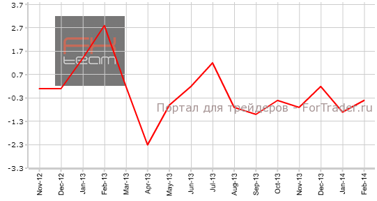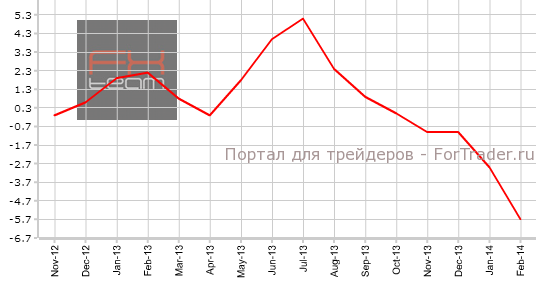 Индекс закупочных цен производителей составил -0.4% м/м (-5.7% г/г). Рынок ожидал роста 0.4% м/м (-5.3% г/г). В январе значение составило -0.9% м/м (-2.9% г/г).