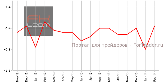 Индекс потребительских цен составил 0.5% м/м (1.7% г/г). Прогноз находился на отметке 0.5% м/м (1.7% г/г). Предыдущее значение зафиксировано на уровне -0.6% м/м (1.9% г/г).