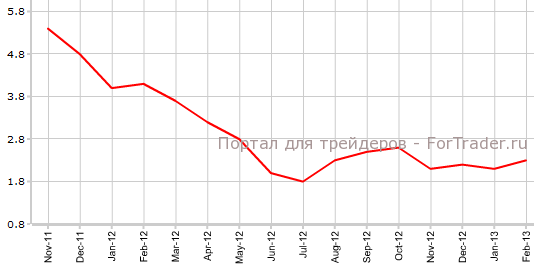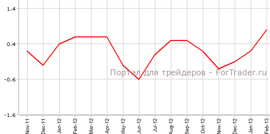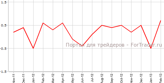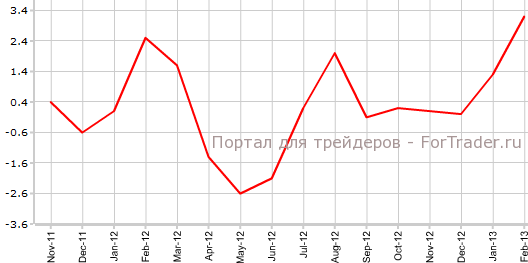 Согласно представленным 19 марта данным ONS, индекс потребительских цен Великобритании в феврале поднялся, как и ожидалось, на 0,7% по сравнению с январем и на 2,8% против аналогичного периода 2012 года. В предыдущем месяце CPI снизился на 0,5% в месячном выражении и вырос на 2,7% в годовом.