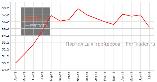 Индекс PMI для производственной сферы зафиксирован на отметке 55.4, при прогнозе 57.2. Предыдущее значение находилось на уровне 57.2.