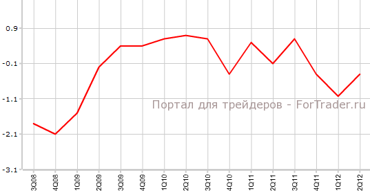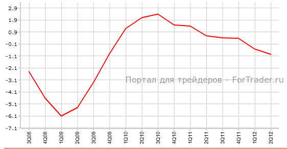 Уровень ВВП Великобритании во 2-м квартале полностью совпал с прогнозами, составив прогнозировался -0,4% к/к и -0,5% г/г. Это указывает на продолжение пребывания британской экономики в рецессии.