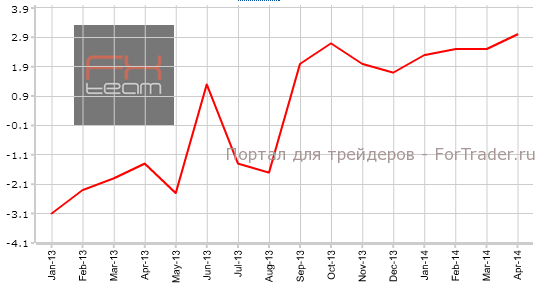 Изменение объема промышленного производства составило 0.4% м/м (3.0% г/г). Прогноз рынка находился на отметке 0.4% м/м (2.8% г/г). В марте изменение составляло 0.1% м/м (2.5% г/г).