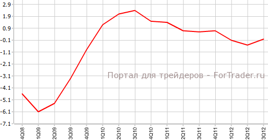 Согласно представленным 27 ноября официальным данным, ВВП Великобритании за 3-й кв не пересматривался, то есть показал рост на 1,0% против предыдущего квартала. Зато была пересчитана годовая оценка — до -0,1% по сравнению с аналогичным периодом 2011 года. Экономисты прогнозировали значения ВВП +1,0% к/к и 0,0% г/г.