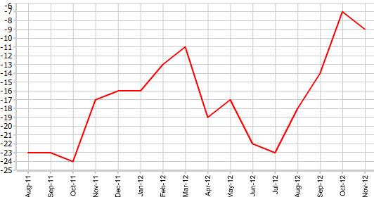 Согласно представленным 11 декабря данным RICS, индекс цен на жилье в Великобритании в ноябре составил -9 против -7 в октябре и такого же значения, прогнозируемого экономистами. Таким образом, показатель впервые продемонстрировал спад с июля этого года.