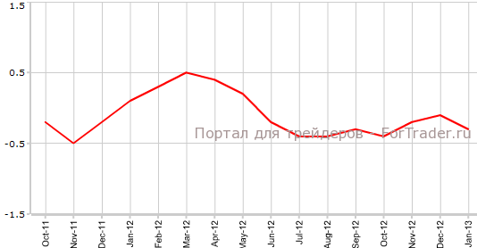 Согласно вышедшим 1 марта официальным данным, индекс потребительских цен Японии в январе остался без изменений по сравнению с предыдущим месяцем и сократился на 0,3% против аналогичного периода 2012 года. Аналитики ожидание, что падение CPI произойдет лишь до уровня -0,2% г/г.