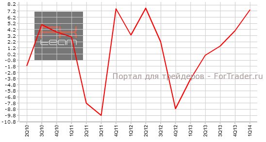 Изменение объема капитальных расходов, составило 7.4% кв/г, при прогнозе 5.7% кв/г. Предыдущее значение находилось на отметке 4.0% кв/г.