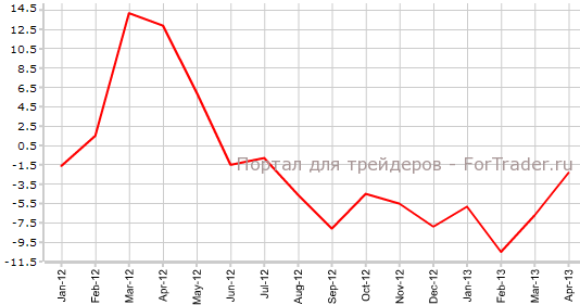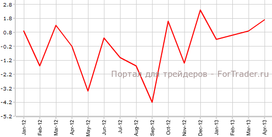 Согласно вышедшим 31 мая официальным данным, индекс потребительских цен Японии в апреле снизился, как и ожидали аналитики, на 0,7% против аналогичного периода 2012 года. В марте наблюдалось падение CPI на 0,9% г/г.