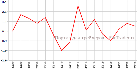 Согласно представленным 12 августа официальным данным, предварительный ВВП Японии во 2-м квартале поднялся на 0,6% по сравнению с предыдущим кварталом и на 0,9% против того же периода 2012 года. Экономисты прогнозировали, что внутренний валовый продукт страны вырастет на 0,9% в квартальном выражении, как и в 1-м квартале. Тогда экономический рост в годовом выражении составлял 0,3%.