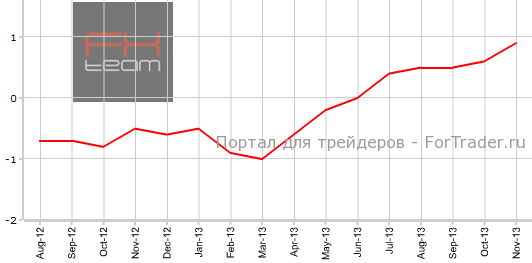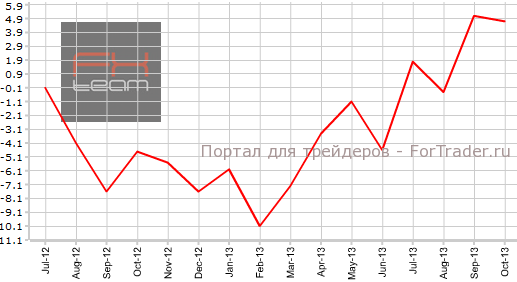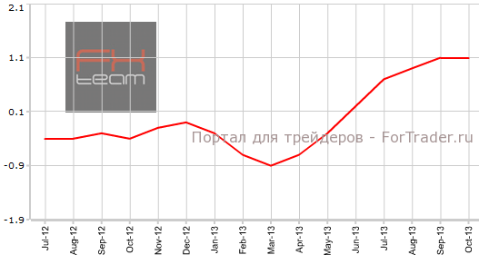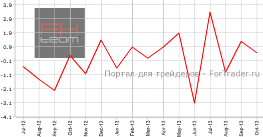 Предварительное промышленное производство в Японии в октябре увеличилось на 0,5% против сентября и на 4,7% по сравнению с тем же периодом 2012 года. Эксперты полагали, что показатель улучшится на 2,1% в месячном выражении и на 6,3% в годовом. В сентябре промпроизводство Японии было равно 1,3% м/м и 5,1% г/г.