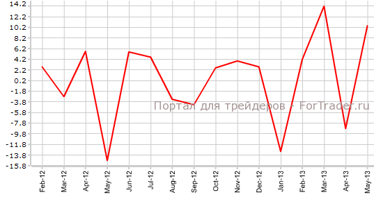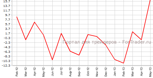 Согласно опубликованным 11 июля официальным данным, заказы на машины и оборудование в Японии выросли на 10,5% по сравнению с предыдущим месяцем и на 16,5% против того же периода 2012 года. Экономисты прогнозировали, что показатель увеличится лишь на 1,9% в месячном выражении и на 3,3% в годовом.