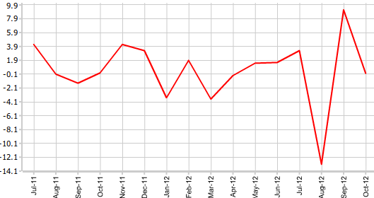 Согласно представленным 27 ноября данным Бюро переписи США, заказы на товары длительного пользования в США в октябре остались без изменений, против средневзвешенного прогноза -1,2%. Показатель, как и ожидалось, резко замедлился после стремительного роста в предыдущем месяце, составившем по пересмотренным данным 9,8%