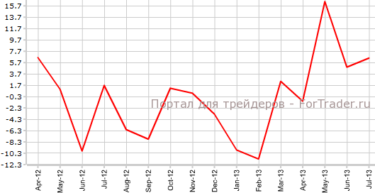 Согласно представленным 12 сентября официальным данным, заказы на машины и оборудование в Японии в июле остались без изменений по сравнению с предыдущим месяцем и выросли на 6,5% против аналогичного периода 2012 года. Экономисты прогнозировали, что показатель прибавит 2,5% в месячном исчислении и 7,7% в годовом.