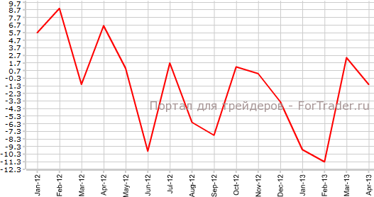 В марте были зарегистрированы значения 14,2% м/м и 2,4% г/г, сообщает журнал ForTrader.