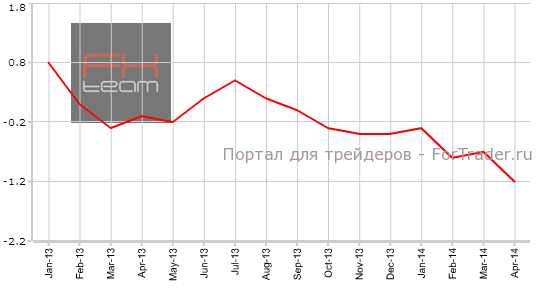 Продолжает укрепляться отрицательный инфляционный тренд, который можно наблюдать по динамике индекса цен производителей и импорта, опубликованным Bundesamt für Statistik. Значение индекса составило -0.3% м/м (-1.2% г/г), что оказалось слабее прогноза аналитиков рынка, которые предполагали публикацию значений на уровне 0.3% м/м (-0.8% г/г). В марте индекс был зафиксирован на отметке 0.0% м/м (-0.7% г/г). На протяжении полугода показатель, характеризующий изменение цен по отношению к аналогичному периоду прошлого года является отрицательным.