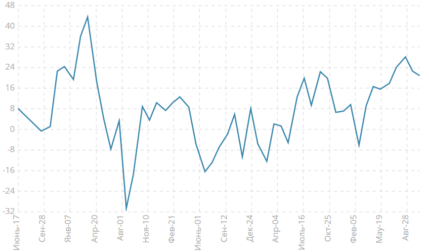 Производственный индекс ФРС-Филадельфии зафиксировал снижение значения до уровня в 20.7 пунктов в октябре против 22.5 в сентябре. Рынок ожидал более сильного снижения, до отметки в 19.9 пунктов.