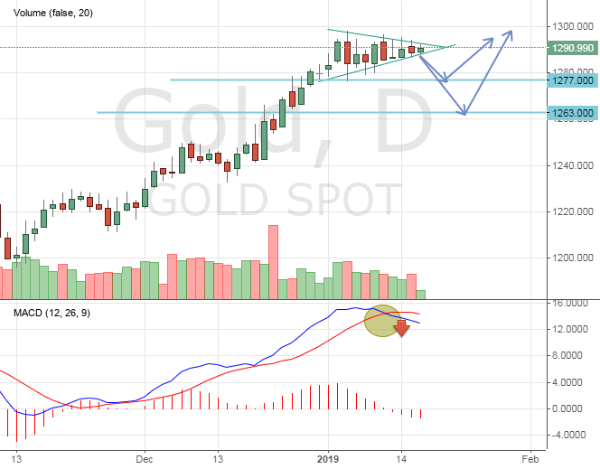 — Рынок драгоценного металла продолжает торговаться внутри узкого диапазона $1285-$1295. Золото удачно открыло новую торговую неделю – в понедельник котировки смогли удержаться выше отметки $1285 и даже несколько оттолкнуться вверх. Это было воспринято рынком как позитивный сигнал. Такое ценовое действие было связано с усилением опасений глобального экономического спада после выхода слабых данных по китайскому экспорту/импорту.