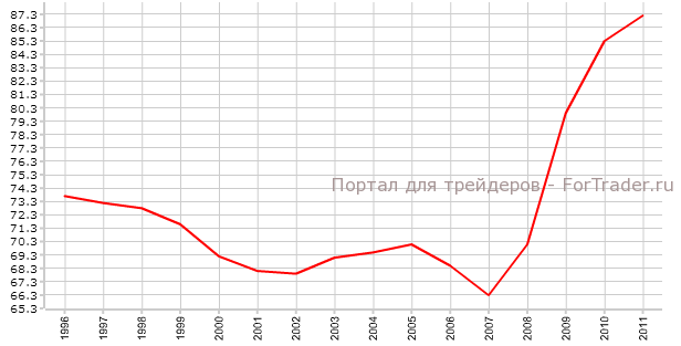 Средний совокупный долг стран Евросоюза в 2011 году достигал 87,2% ВВП, он был самым высоким за всю историю создания европейской валюты. 14 стран Евросоюза не соблюдают условия Маастрихстского договора, в котором указано, что госдолг к ВВП не должен превышать 60%. Самый высокий уровень долга у Греции – 165,3%, Италии – 120,1%, Ирландии – 108,2%, Португалии – 107,8%, при этом рассчитано, что значение выше 120% для многих стран уже является необратимым и ведет к дефолту.