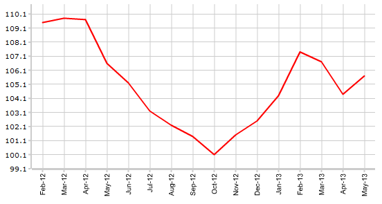 В мае 2013 года индекс делового климата Германии IFO вырос до отметки 105,7 с уровня 104,4, превзойдя ожидаемое экономистами увеличение до значения 104,5. В июне аналитики финансовых рынков прогнозируют дальнейший рост индекса IFO до уровня 106,0.