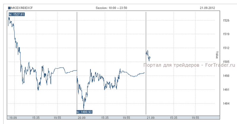 По итогам торгов 20 сентября индекс ММВБ вырос до 1499,28, практически достигнув ранее потерянной отметки в 1500 пунктов. Объем торгов индекса ММВБ за вчерашний день составил 45,844 млрд. руб. Общий объем торгов на фондовой бирже ММВБ-РТС в четверг составил 405,875 млрд. руб.