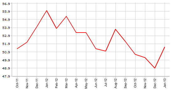 В январе индекс PMI в сфере услуг Великобритании вырос с отметки 49,8 до уровня 51,5, в то время, как экономисты не ожидали никаких изменений. В феврале аналитики финансовых рынков прогнозируют, что динамика индекса деловой активности в сфере будет статичной и его значение останется на уровне 51,5.
