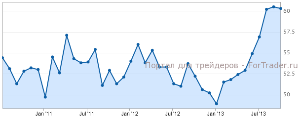 Производственная сфера не является доминирующей в экономике Великобритании, поэтому, традиционно, более сильный интерес инвесторов и трейдеров вызывают данные по деловой активности в сферах услуг и строительства. Индекс деловой активности PMI в сфере услуг Великобритании рассчитывается институтом CIPS на основании данных менеджеров по закупкам в секторе услуг. Значение индекса ниже 50 свидетельствует о сокращении активности и является негативным фактором для фунта стерлингов.