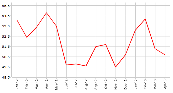 В понедельник, 3 июня, в 18:00 по московскому времени Institute for Supply Management опубликует индекс производственной активности США за май 2013 года.