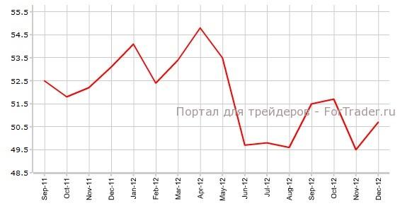 Согласно данным за декабрь 2012 года индекс промышленной активности ISM США показал рост до уровня 50,7 с отметки 51,7, превысив прогнозируемое значение 50,3. В январе 2013 года аналитики финансовых рынков прогнозируют продолжение положительной тенденции и ожидают выход индекса ISMна уровне 50,8.