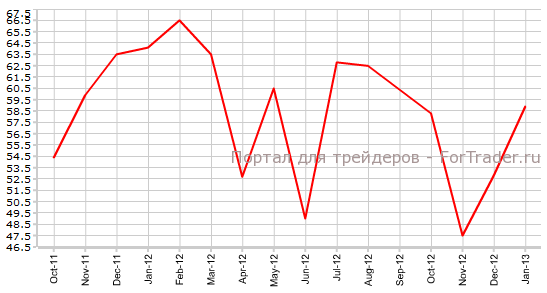 Принимая во внимание, что Банк Канады снизил прогноз по росту ВВП в 1-м квартале 2013 года с 2,6% до 2,3%, эксперты журнала ForTrader полагают, что фактическое значение индекса производственной активности PMI Канады от Ivey покажет снижение в рамках прогноза.