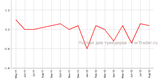 Индекс розничных продаж является важным индикатором потребительских расходов, показывая объем всех проданных товаров предприятиями розничной торговли в Канаде за месяц на основе выборочного опроса магазинов различных сфер и размеров. На основании этих данных можно представить себе общеэкономическую ситуацию в стране и сделать выводы о возможном движении курса канадского доллара. Также нельзя забывать, что розничные продажи являются главным драйвером экономики и имеют значительное воздействие на ВВП страны. Консенсус-прогноз участников финансовых рынков предполагает рост Core Retail Sales до 1.0% против 0.4% месяцем ранее.