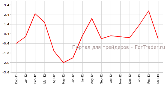 В марте индекс PPII Великобритании снизился с отметки 2,8% до уровня -0,1%, не дотянув до прогнозируемого значения -0,2%. В апреле аналитики финансовых рынков прогнозируют дальнейшее снижение индекса до уровня -1,2%.