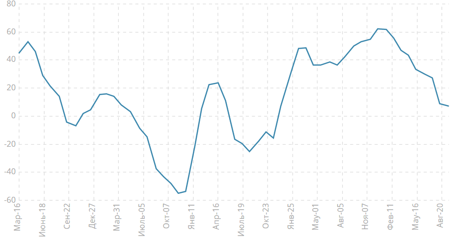 Индекс настроений в деловой среде Германии от института ZEW ожидается на уровне 0.2 в октябре против 6.9 в сентябре. Аналитики журнала ForTraders.org ждут, что индикатор окажется на отрицательной территории и зарегистрирует ухудшение в бизнес-среде в октябре.
