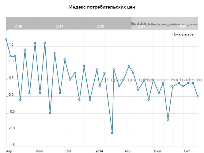 Оценка индекса потребительских цен еврозоны в ноябре имеет вероятность составить 0.3% г/г по ожиданиям рынка и совпасть с предыдущим значением за сентябрь. Оценка за октябрь находилась на уровне 0.4% г/г. По мнению аналитиков журнала ForTraders.org крайне велика вероятность того, что цены продолжат расти темпами сентября.