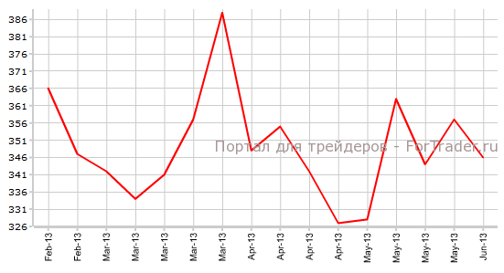 За неделю с 26 мая по 1 июня количество заявок на пособие по безработице снизилось с уровня 357K до отметки 346К, не дотянув до ожидаемого экономистами показателя 345К. За неделю с 2 по 8 июня аналитики финансовых рынков прогнозируют увеличение количества обращений за пособием по безработице до уровня 354К.